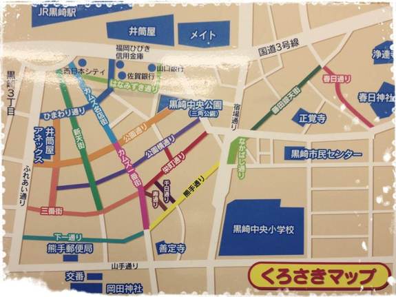 今日はわかりやすい地図を貼り付けます。(ところどころ、反射していてごめんなさい)この地図の面積で60ha(ヘクタール)くらいの面積の街が「黒崎」です。