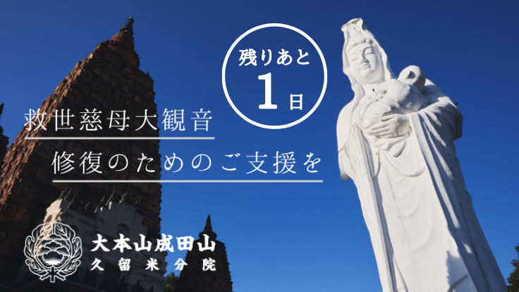 成田山久留米分院のクラウドファンディングを応援いただきありがとうございます。ご支援募集はいよいよ残すところあと1日となりました!