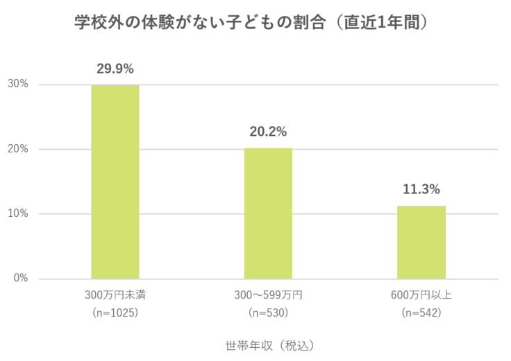 世帯収入が低い家庭ほど体験の機会が少なくなっています。