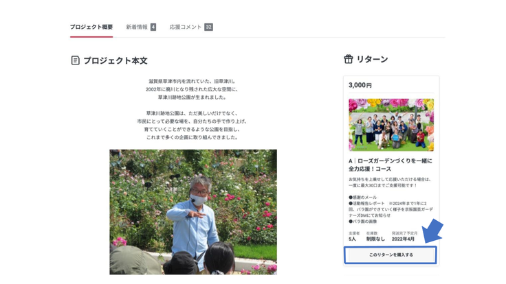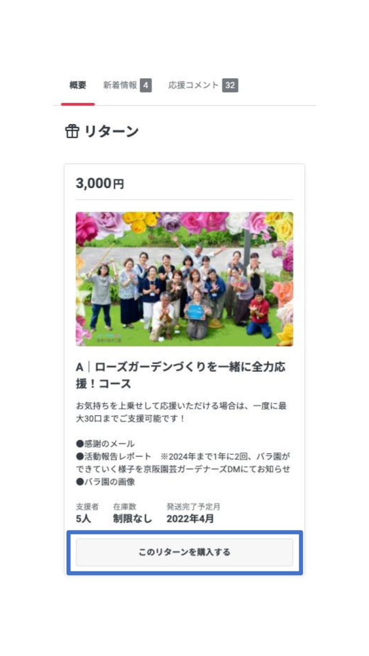 支援したいリターンを選び[このリターンを購入する]をクリック