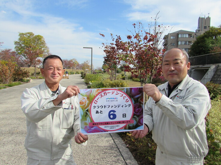 バラ園造成の予定地では、京阪園芸より緒方部長と札葉課長が造形計画の