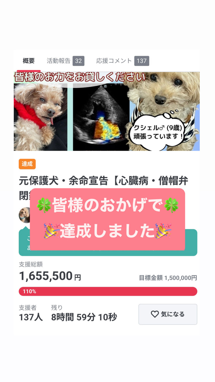※頂いた支援金はクシェルのために大切に使わせて頂きます。