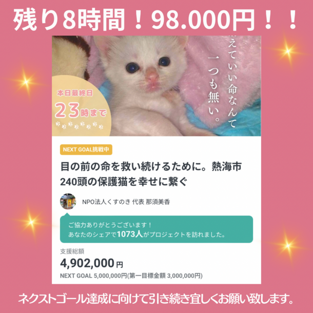 どうか最後まで皆様の温かいご支援と応援をくすのきニャン′ずへお願いいたします🙇♀️