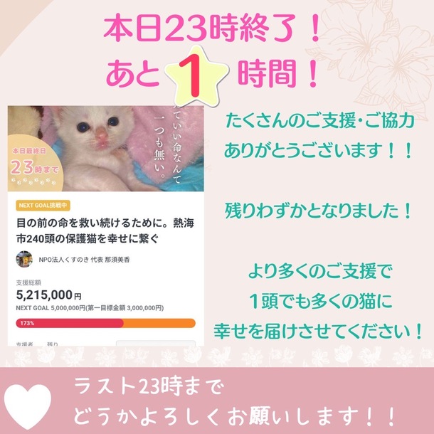 どうか最後まで皆様の温かいご支援と応援をくすのきニャン′ずへお願いいたします🙇♀️