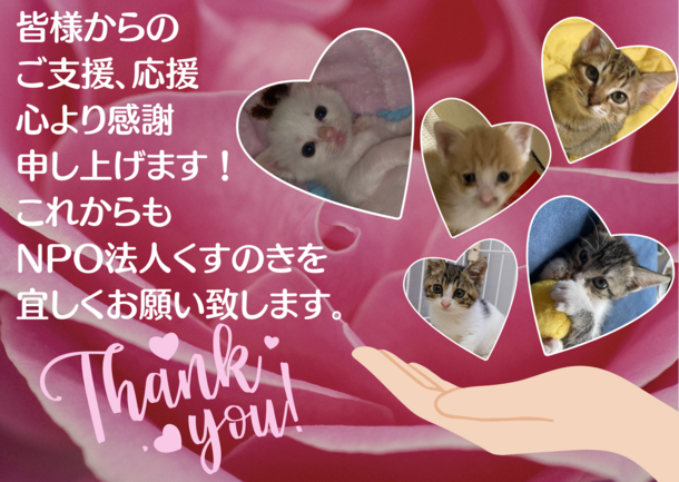 皆様に甘えるばかりで大変心苦しい限りですが、これからもくすのきとくすのきに暮らす保護猫達へ、お力添えを賜れましたら幸いに存じます。