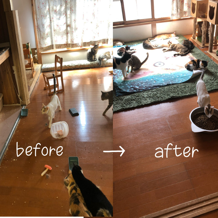 こういったお世話には時間がかかりますが、お掃除に入ってくれるボランティアさんは少数精鋭の達人ばかりのため本当に助かっています!