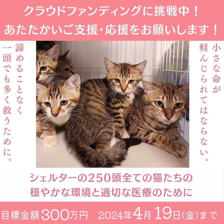 私たちが諦めてしまえば、シェルターに居る250頭の猫たちだけにとどまらず