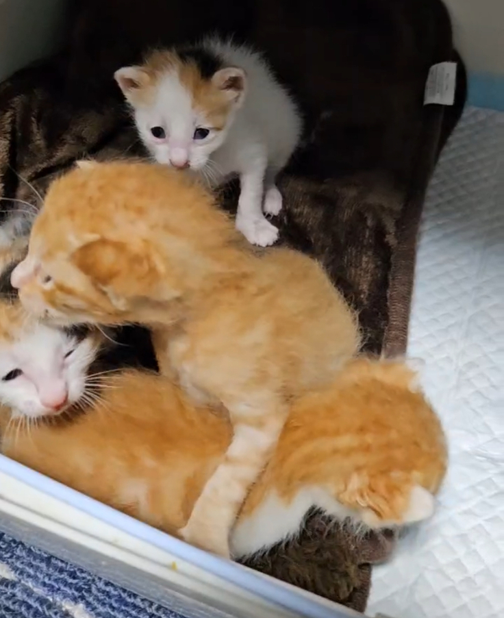 時折、子猫たちが1点をじっと見ていることがあるそうです。