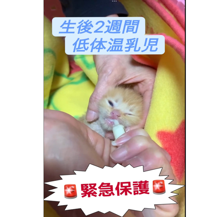 低体温になっている様子から、母猫が運んでいる途中に落としてしまったのか、何処かで産まれているのが人間に見つかり遺棄されたのか解りませんが、命が危険な状態でした。