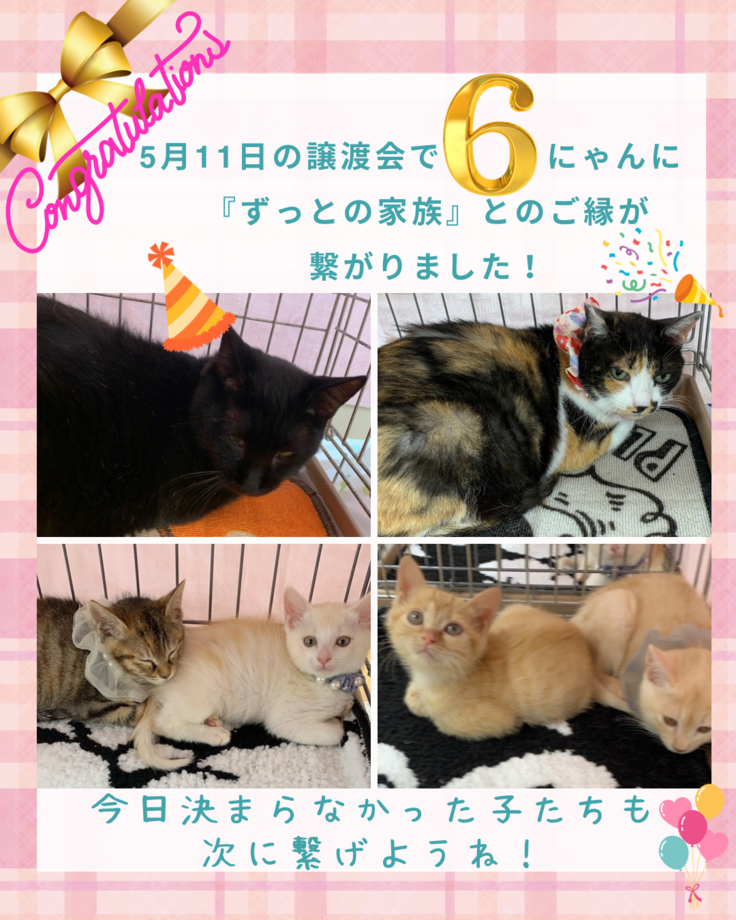 本日、5月11日の譲渡会で6にゃんに、