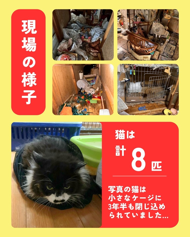 異常なほどの高温の室内と足の踏み場も無いほど荒れて汚れた床に、幾度なく目にしてきた多頭崩壊現場が思い起こされました…