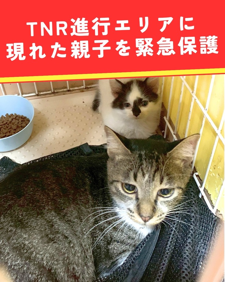この付近でご飯をもらっている子達の手術を行った直後に〝毒餌〟が撒かれるという事件が発生した為、突然現れた、この親子ねこを緊急保護することにしました!!!