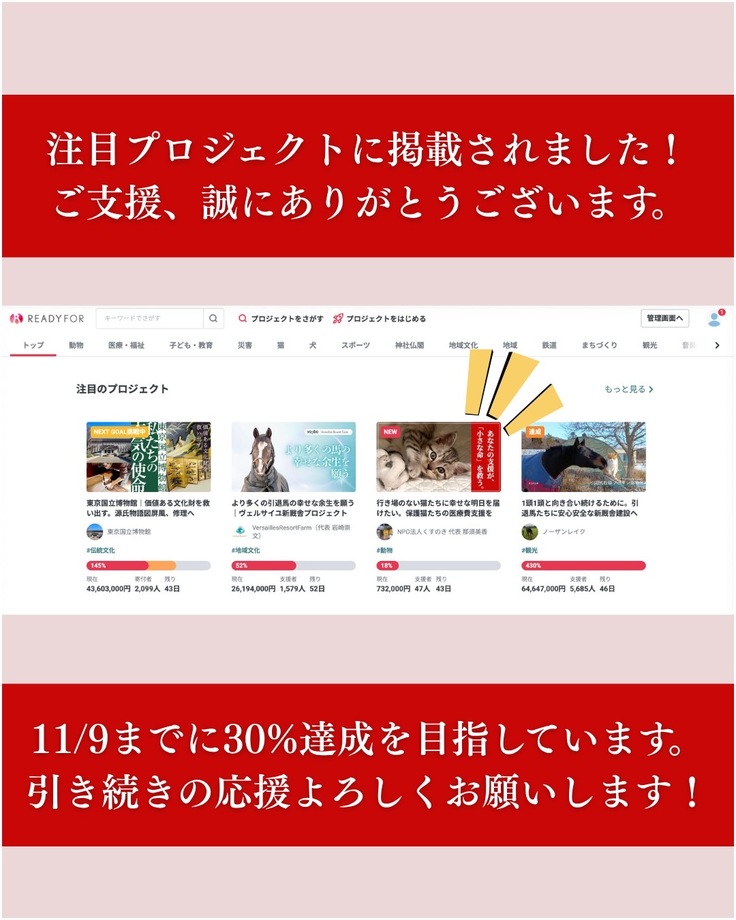 プロジェクト開始から2日目となる11/6(木)、皆様からの沢山のご支援により、【注目のプロジェクト】として掲載されました🙌