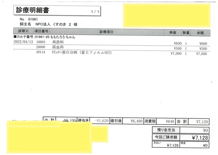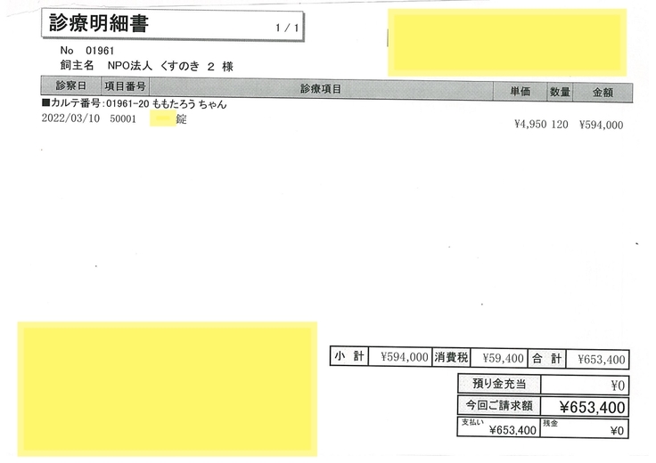2匹目.モモタロウのFIP治療費用(薬代のみ) ¥958,320-(税込)