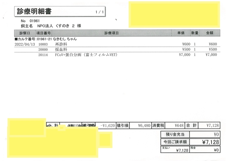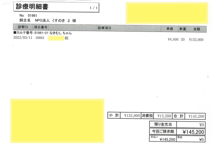 3匹目.ナキムシのFIP治療費用(薬代のみ) ¥958,320-(税込)