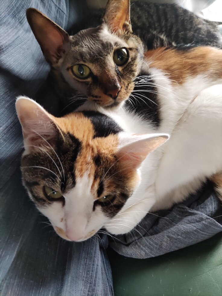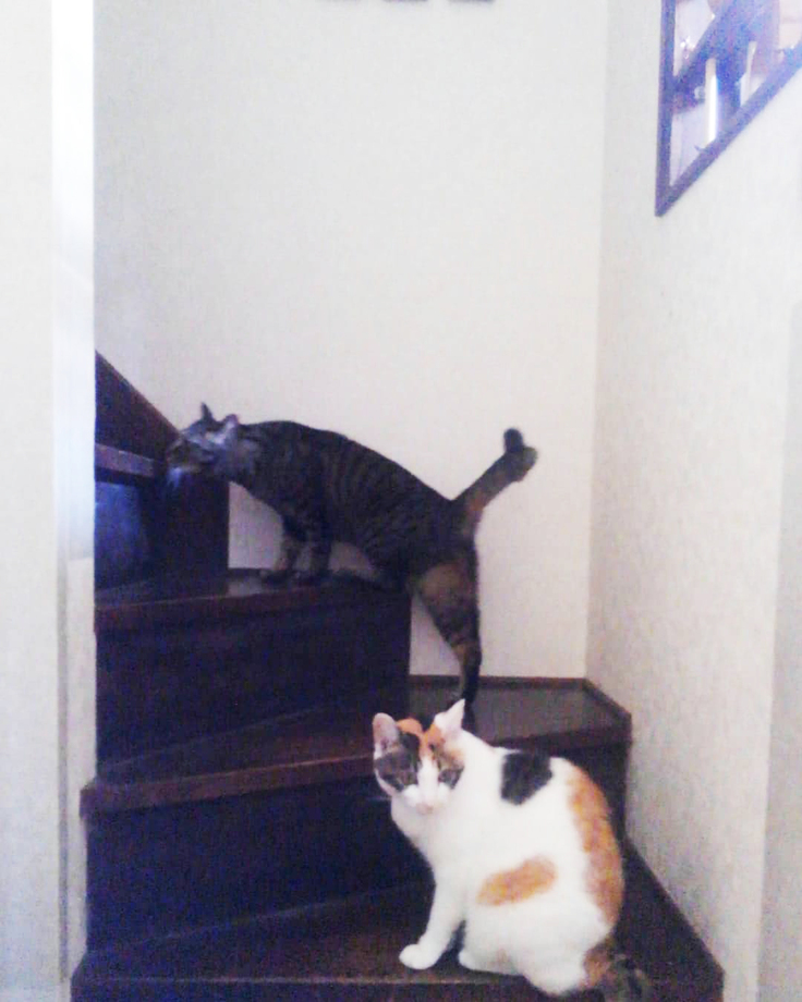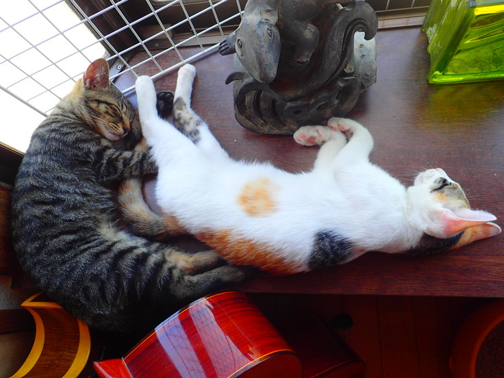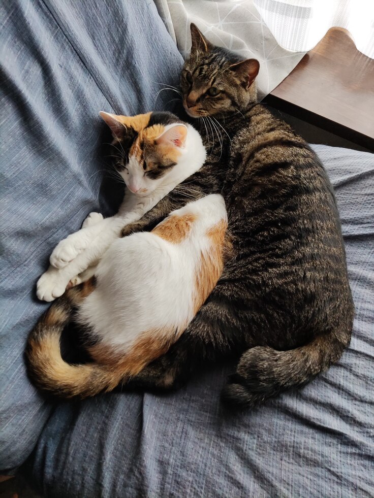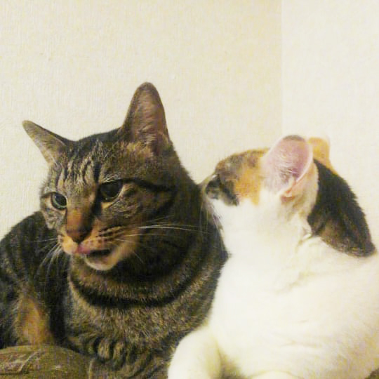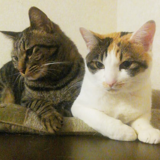 彼らと暮らし、しばらくして飼い主にパートナーが出来て、猫2匹、ひと2人の暮らしになりましたが、猫たちは受け入れてくれて問題なく暮らしています。