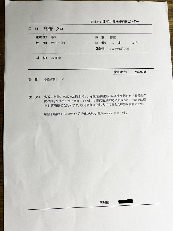 腫瘍の病理確定診断の結果も出ていましたが、結果は2通あり悪性グリオーマ(グレード
