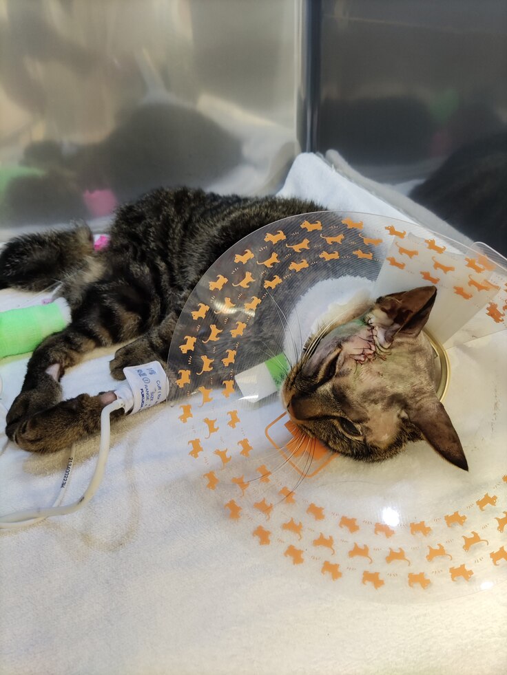 大きな傷跡が痛々しいですが、病気中よりはだいぶ生気がみなぎっているようです