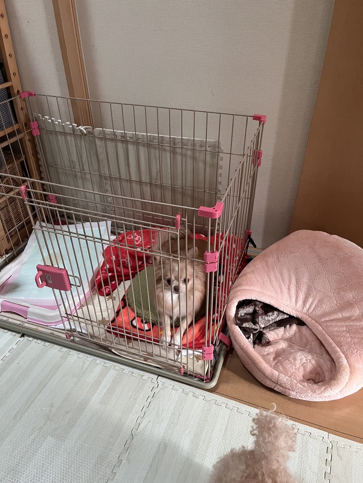 くうちゃんはゲージが大好きで1番落ち着く場所です。
