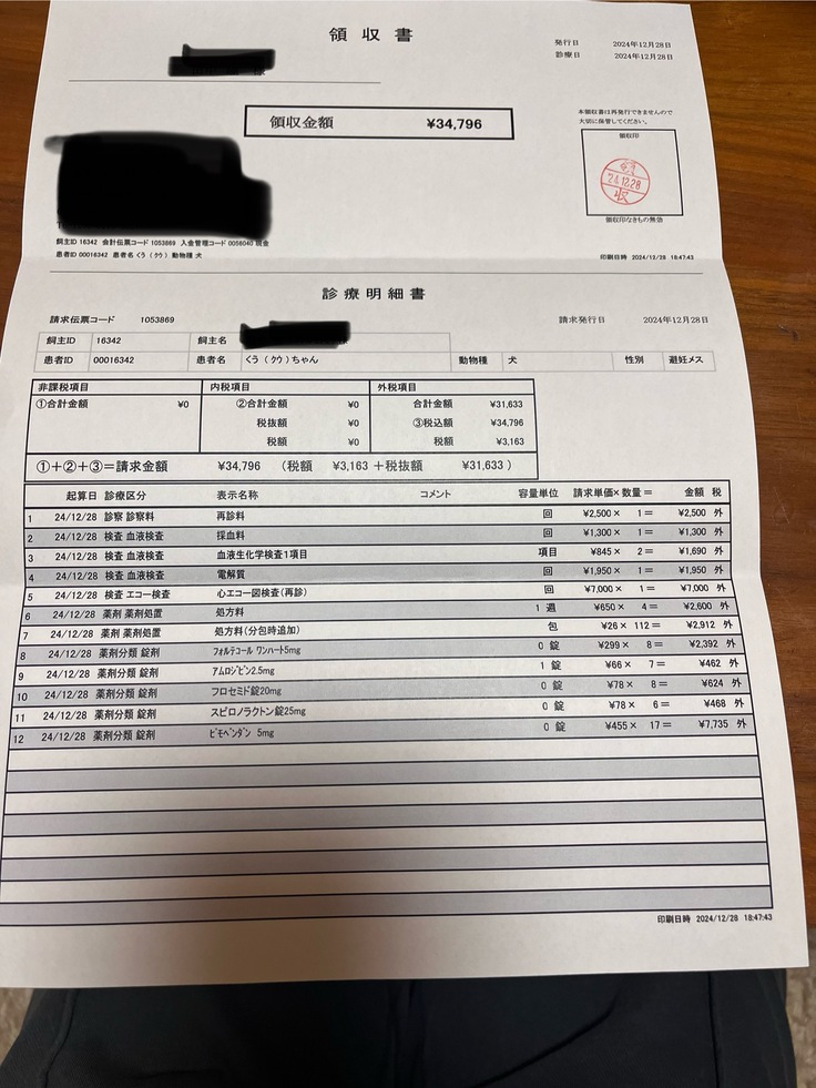 心臓の状態は前回と同じで悪化したりはしてないとのことε-(´∀`;)ホッ