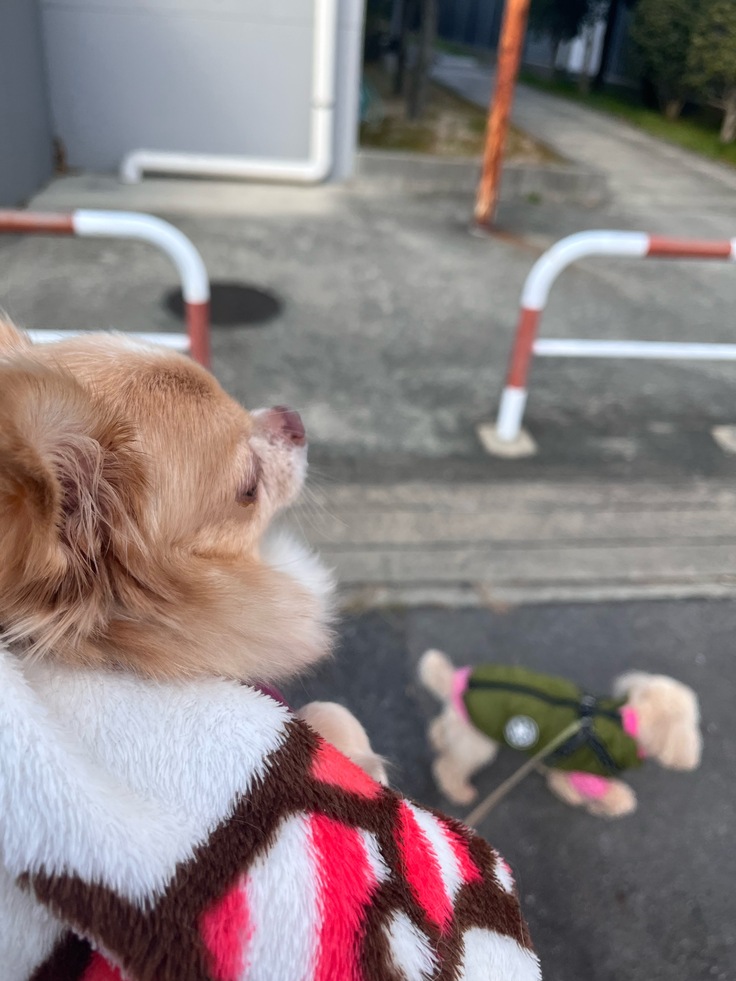 公園で少しだけ歩かせたのですが、咳が出てきて💦すぐに毛布にくるみました💦