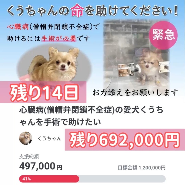 愛犬の心臓の手術が決まりました!少しだけ手助けしてもらえませんか?