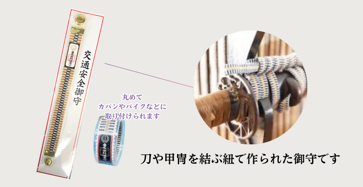 刀や甲冑を結ぶ紐で作られた、交通安全を祈願する御守です。ここでしか手に入らない、クラウドファンディング限定カラーでおつくりさせていただきます。