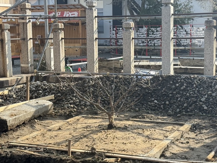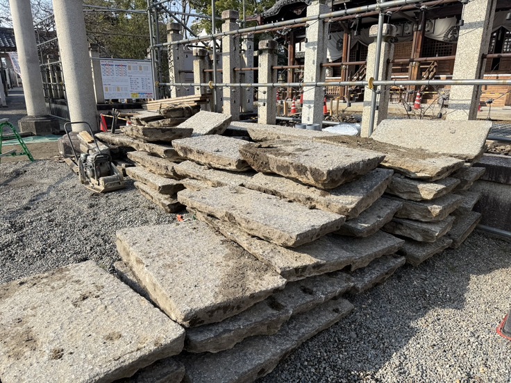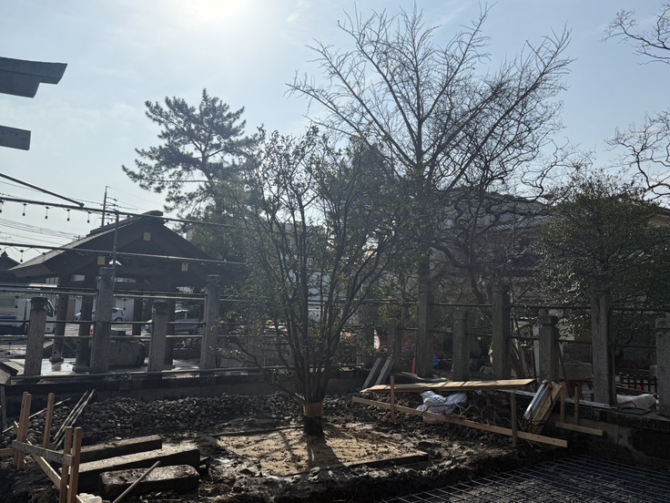 そのほかにも周辺工事のために一度庭師さんのところへ移築・保管されていた木々が境内に戻ってきたり、狛犬が移設されたりと各所で大改修が進んでおります。