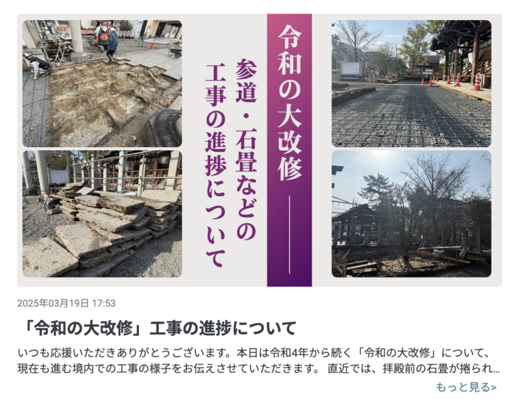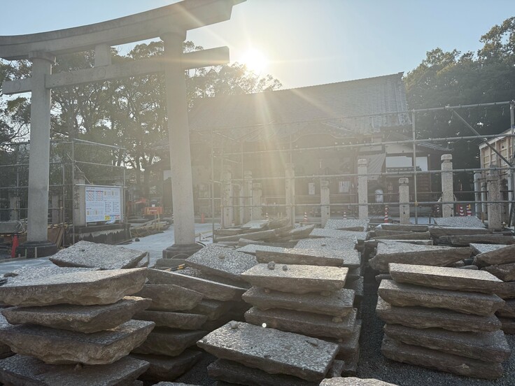 いつも桑名宗社を応援いただきありがとうございます。令和4年から続く「令和の大改修」について、先日も現在も進む境内での工事の様子を、今回も写真を交えてお伝えさせていただきます。