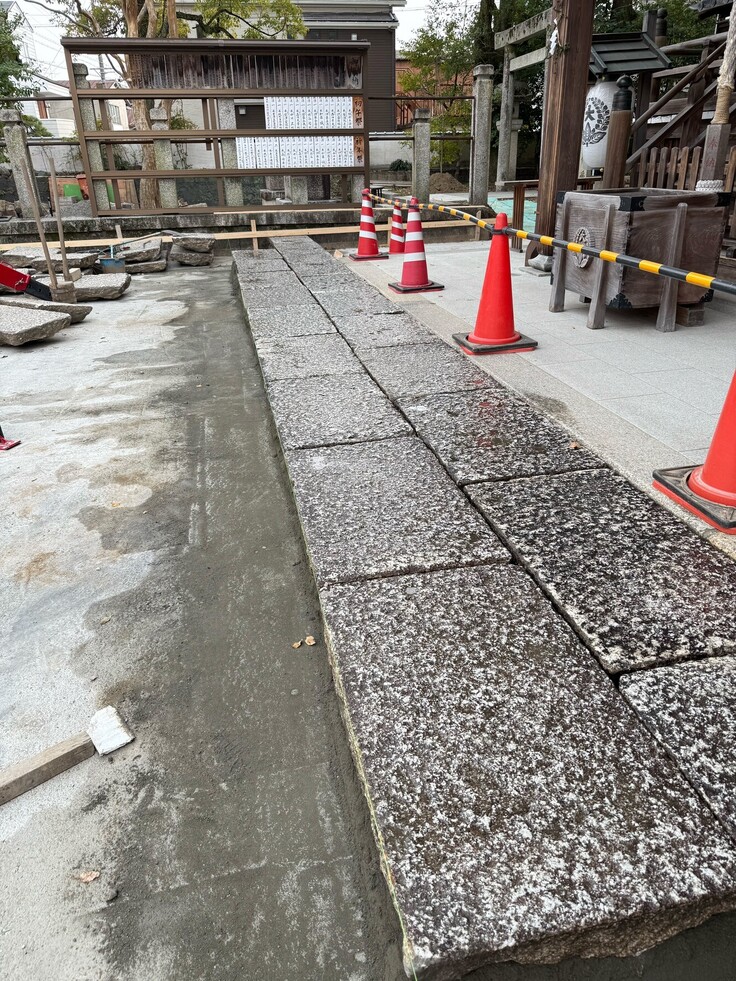 その整った参道に並べられる石畳たちの様子です。これらは境内の別の場所で使われていた石畳で、より神様に近い場所に移動することになります。