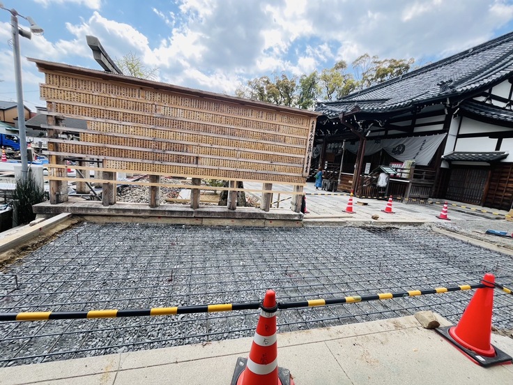 皆様からのあたたかい応援のおかげで、工事は順調に進行中です。5月には駐車場のバリアフリー舗装を予定しており、さらに6月の式年遷宮・御樋代木奉迎送行事、完成披露奉祝祭、宝刀村正写し鍛錬打ち始め式へ向けて、皆様をお迎えできるよう準備も着々と進んでいます。