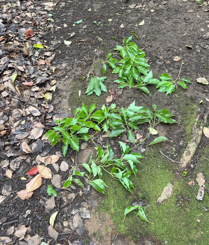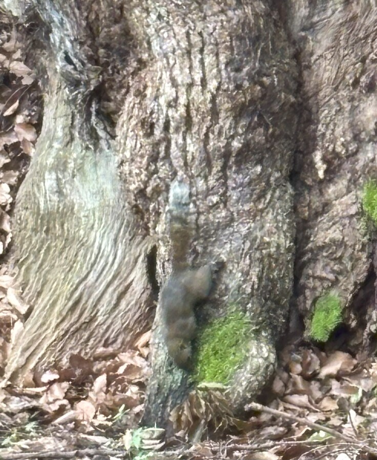 また、大樟の周辺には外来種の台湾リスが生息しており、その数も相当増えています(最低でも数百匹はいるであろうと考えられる)。今朝、枝が折れた近くに、リスによってかじられた大量の新芽が落ちていました。せっかくの新芽が減ることは心配です。