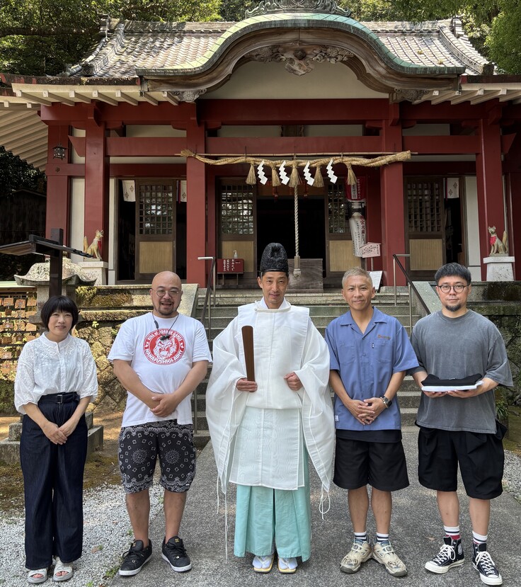クラウドファンディングで大変お世話になったマジフシギの皆様が葛見神社に来てくださいました。今回はナナフシギの大赤見さん(右から2番目)がアパレルブランド(ノヴルット)を立ち上げるために御祈祷を受けに来られたのですが、大樟を見て、「1月末に来た時よりも元気に見えます。」と言ってくださいました。皆様からのお気持ちを受けた大樟はきっと前よりも元気になっていると感じています。