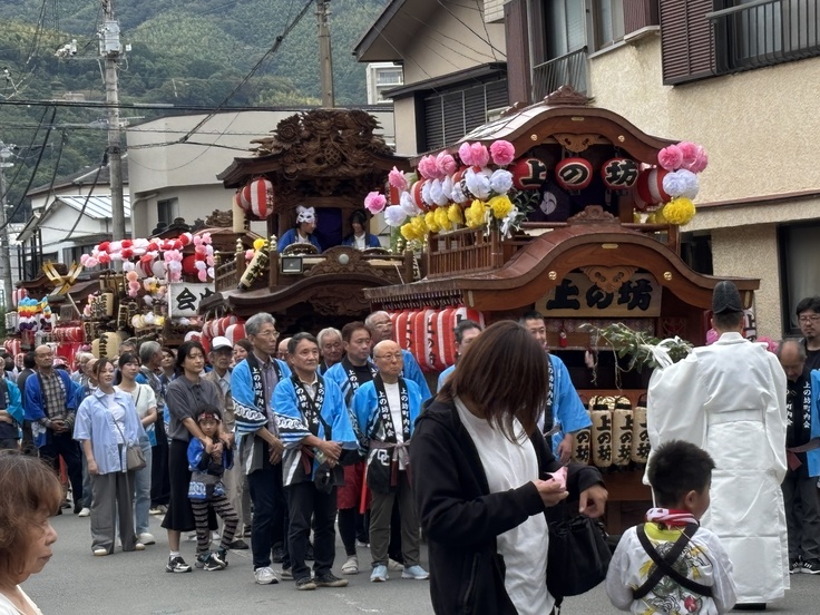 令和7年度の葛見神社の例大祭が10月11日(土)の宵宮、10月12日(日)の本宮と無事に行われました。高齢化と少子化の影響により本年も山車祓いに参加できない町内がありましたが、氏子地区の皆様の努力によりコロナ禍以降徐々に祭典が元に戻りつつあります。以前に比べると内容や規模が縮小されている点は否めませんが、いつまでも賑やかで大人も子供も楽しく参加できる祭典が続いていくことを願います。