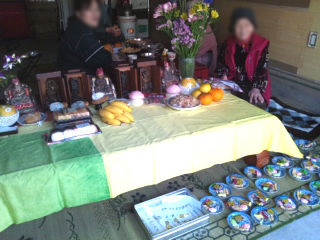 境港市上道町では、半世紀くらい前には、十数軒の家がお大師さんをおこなっていましたが、現在は3軒。その内の1軒が私の実家の京紺屋(屋号、きょうごや)です。当番家は、同じ学区(小学校)の中野町と併せても7軒ほどとなっています。他の町ではなくなってしまったところもあります。