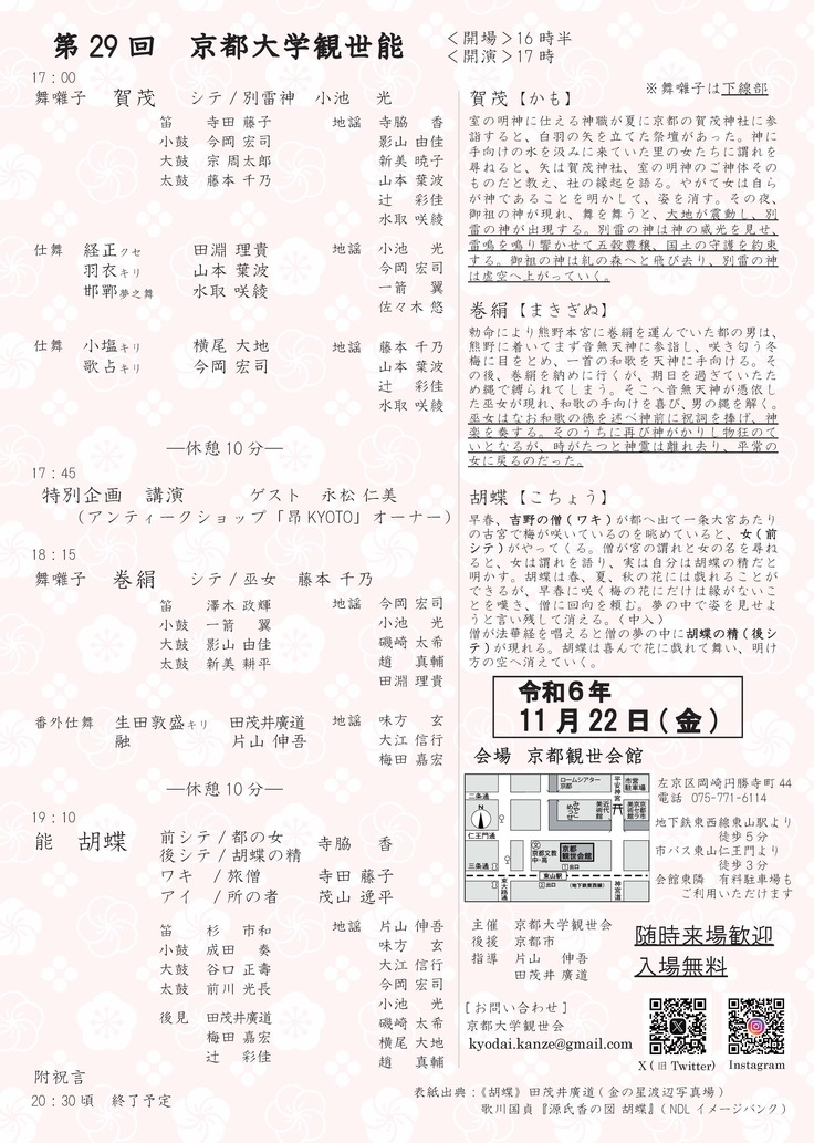 おかげさまで、今年も京都大学観世能を開催できる運びとなりました。