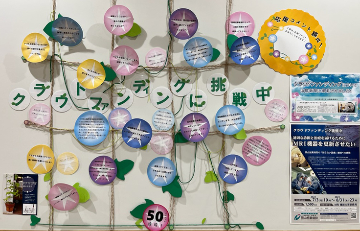 患者相談支援センターの横に設置した応援メッセージボードには、