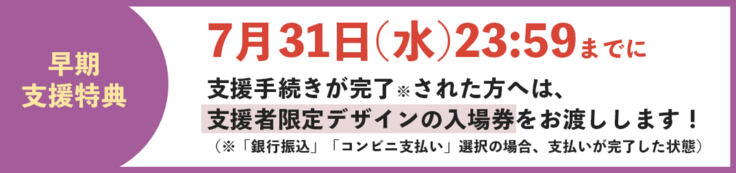 お知らせ:早期支援特典は7/31(水)まで!