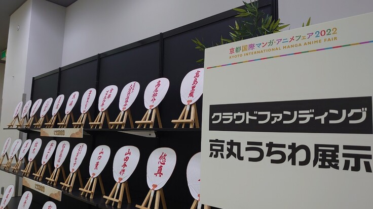 昨年のクラファンでは、一部コースのご支援者さまのお名前を京丸うちわにお書きし、会場に展示コーナーを作りました。京まふ当日に自分のうちわの写真を撮っていただくご支援者様もいらっしゃり、ご支援者様と実際にお会いできたことに感動したことを覚えています。