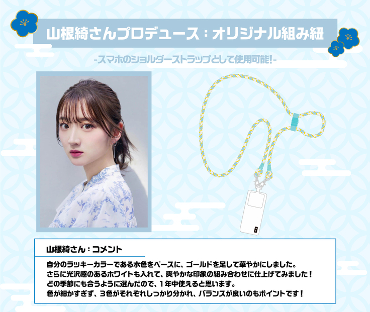 山根綺さんがデザインにこだわった伝統工芸品の組み紐をお届けします。【直筆サイン入りの木箱に入れた状態でお届けします】
