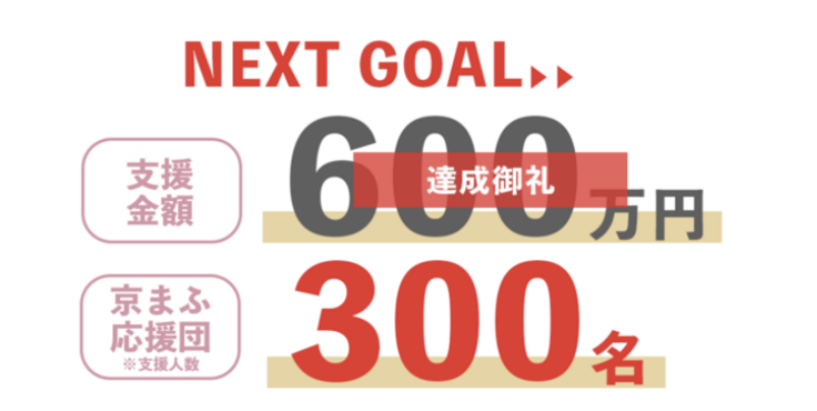 金額としてのネクストゴールは掲げませんが、引き続き京まふ応援団(支援人数)300名を目指して挑戦を続けます。