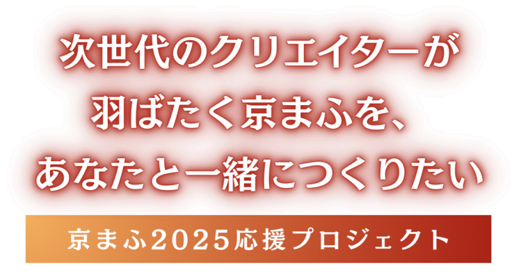 温もりと絆から生まれる新しい才能と物語を、皆様と一緒に未来へつないでいきたい。そんな想いを込めて、このプロジェクトに取り組んでいます。京都は新たな挑戦を繰り返し、創造し続けてきたまちです。京まふでは、このマインドを大切にし、クリエイターと共に、挑戦を続けてまいります。