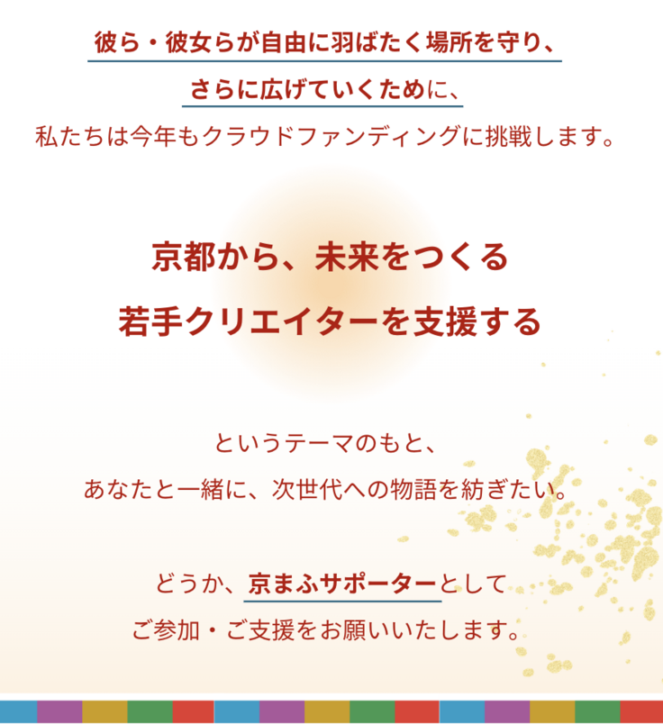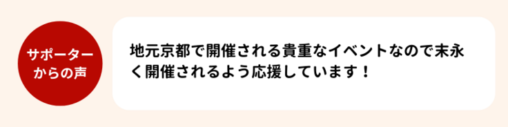 この支援の輪は、やがて京都を越えて日本全国、そして世界へと広がり、ともに支え、高め合うことで、新たな文化や豊かさが生まれていくことでしょう。