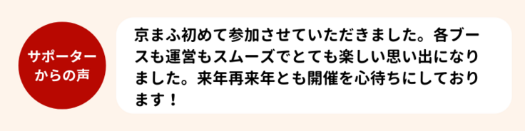 など、来場者の皆様から多くの嬉しい声をいただきました。