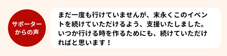 ・支援完了時に「応援コメント」としていただいたメッセージは、本プロジェクトのPRのために利用させていただく場合がございます。あらかじめご承知おきください。