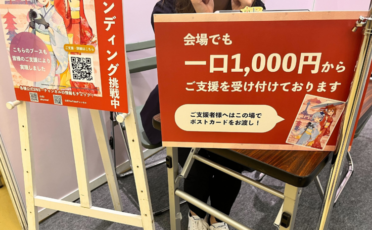 京まふ2024では、クリエイターズブース内にクラウドファンディングのご支援ブースを設け、現地支援の受付とともに、来場された京まふサポーターの皆様に感謝を伝えさせていただきました。「ゴールに向けて頑張ってください!」など、たくさんの応援の声もいただき、運営メンバー一同にとって大きな励みとなりました。
