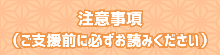 ・天災等やむを得ない事情により延期・中止・プログラムの変更など、予定通り開催できなかった場合でも、いただいたご支援は今後の準備費用やその他の経費として使用させていただくこととし、ご支援の返金はいたしかねますのでご了承ください。