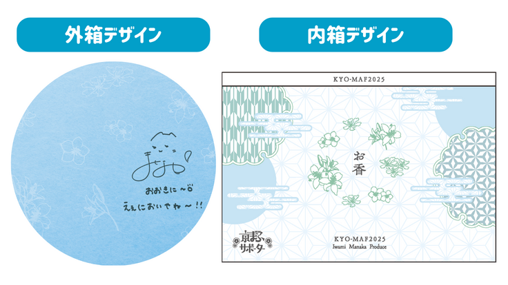 京まふ2025おこしやす大使を務める岡本信彦さん、石見舞菜香さんプロデュースの返礼品「伝統工芸品・お香セットコース」のパッケージデザインが決定しましたので改めてご紹介させていただきます!