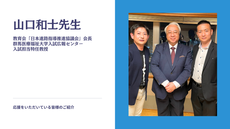 今回のプロジェクトの応援を誰に頼もうかと二人で相談した時に、真っ先に山口先生のお名前が上がりました。今回の情報拡散に大きな影響を与えてくださっています。