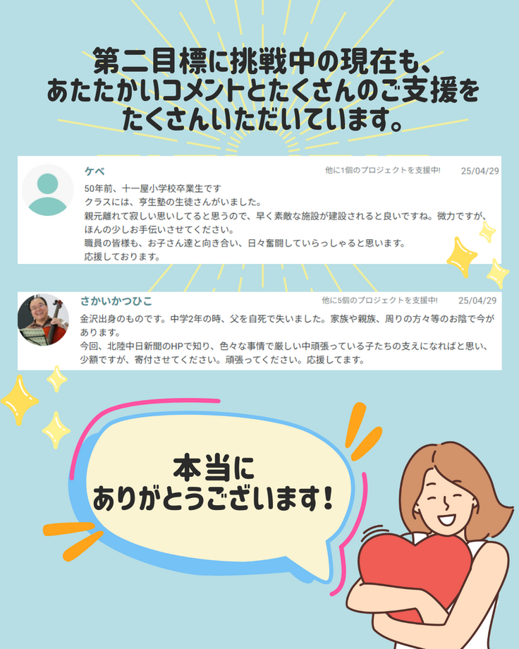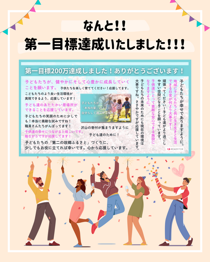 ※特別なリターンを用意しない代わりに、子ども達のより良い環境のため、諸経費を除き全て、家具・家電購入に活用させていただきます。